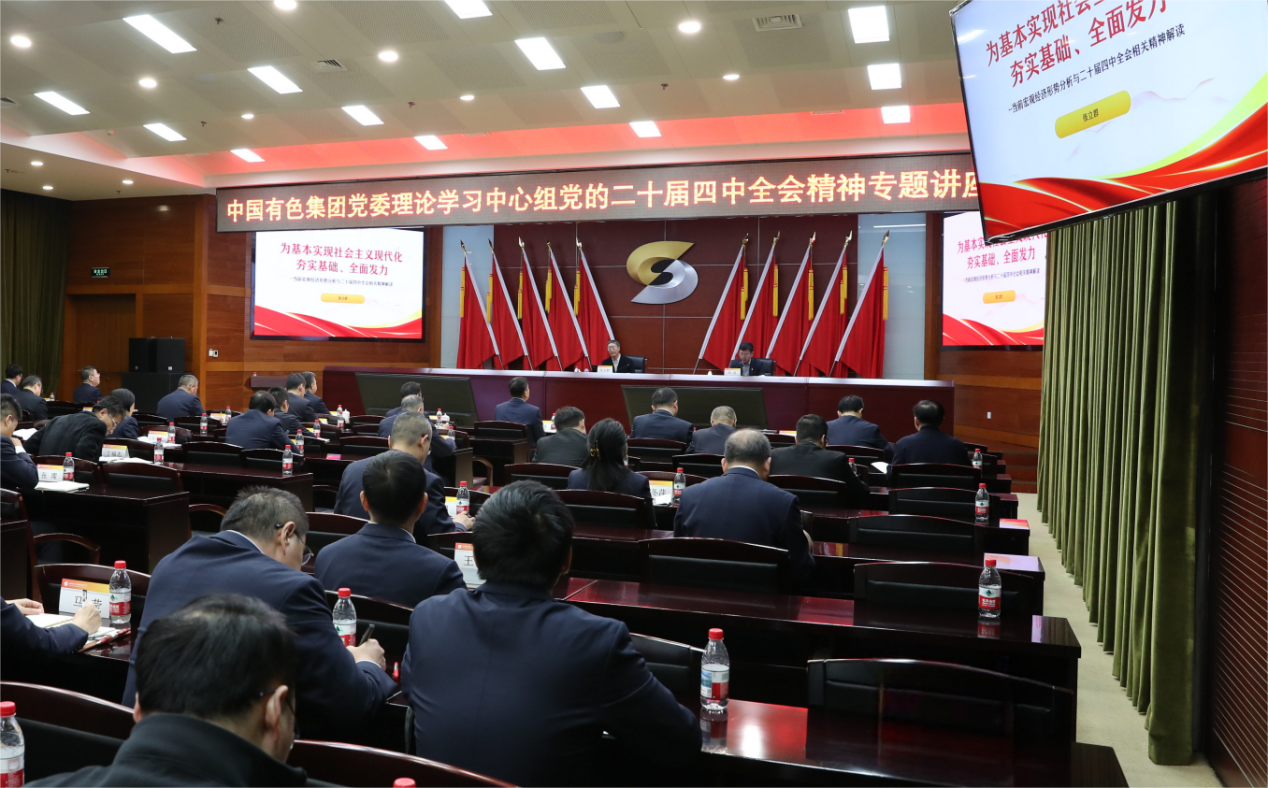 为深入学习宣传贯彻党的二十届四中全会精神,推动全会精神在集团落实落地,12月10日,中国有色集团党委在北京总部举办理论学习中心组党的二十届四中全会精神专题讲座会议。
