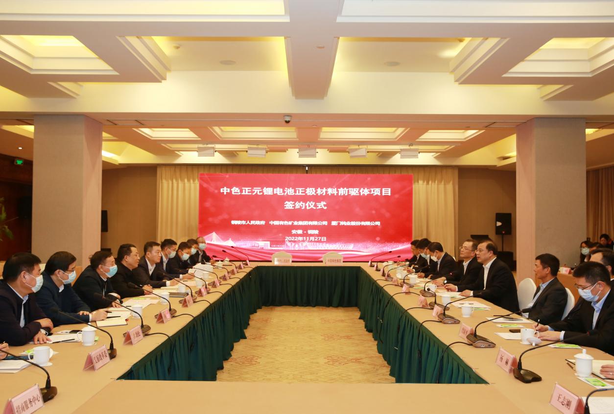 11月27日,中色正元锂电池正极材料前驱体项目签约仪式在铜陵市举行。铜陵市委书记丁纯、厦门钨业党委书记、董事长黄长庚、中国有色集团党委书记、董事长奚正平出席仪式并发表讲话。铜陵市市长孔涛主持签约仪式。