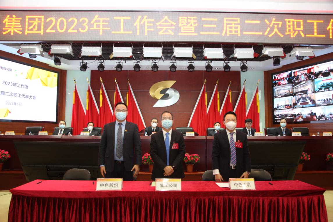 2023年1月9日至10日,中国有色集团召开2023年工作会暨三届二次职工代表大会,全面贯彻中央经济工作会议和中央企业负责人会议精神,总结2022年工作,分析面临的形势和挑战,部署2023年工作,加快推动集团公司高质量发展。集团公司党委书记、董事长奚正平讲话,党委副书记、总经理张晋军作工作报告。国家审计署企业审计三局一级巡视员张进,中国有色集团外部董事夏策明、马力、张逢春出席会议。