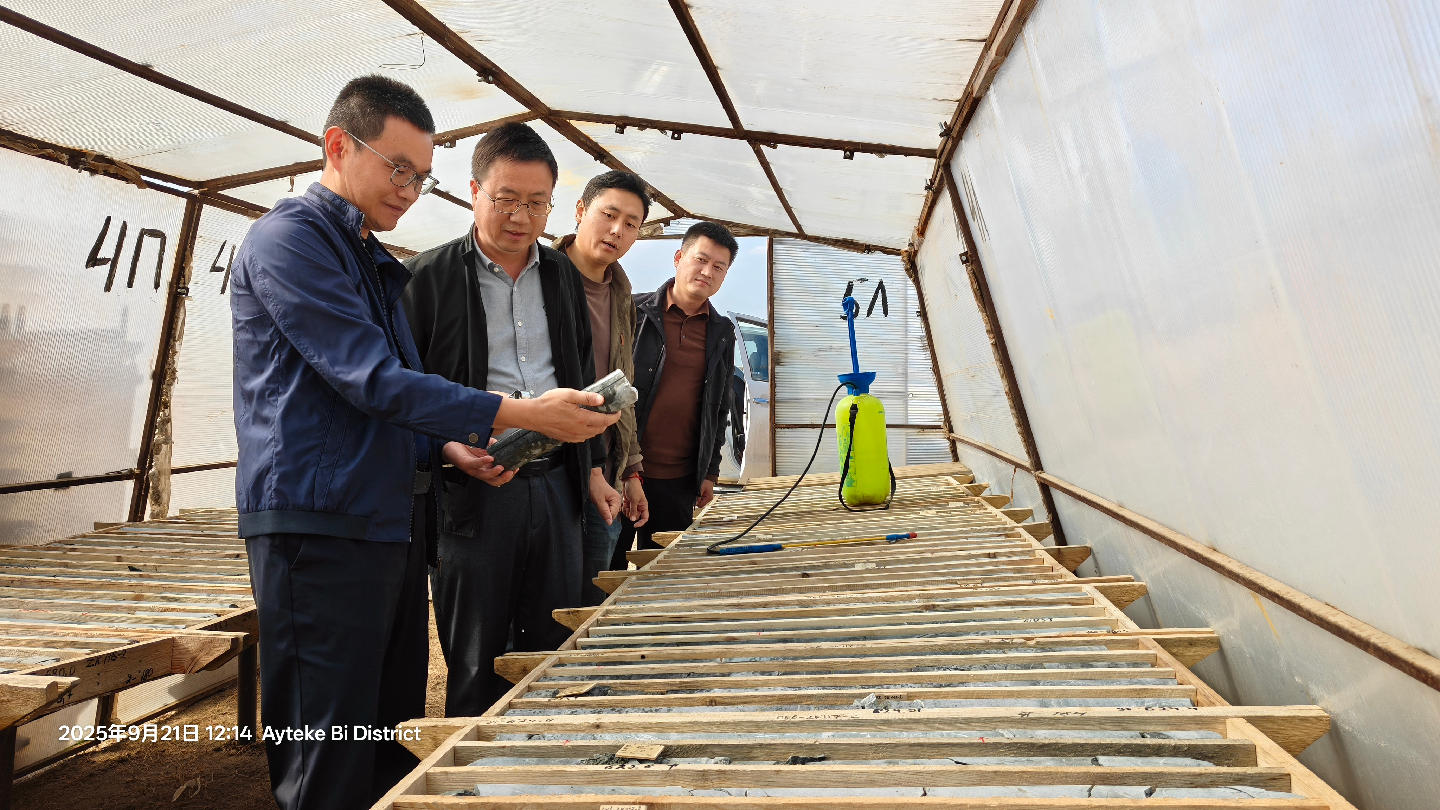 在betvlctor伟德首页近期实施的重点项目现场,胡朋一行等仔细察看岩心编录、样品加工和钻探施工等环节,对项目进度和质量管控情况进行全面检查。该项目组自2025年7月进场以来,克服诸多困难,在集团公司现场负责人覃鹏统筹指导下,仅用2个月时间完成设计工作量的63%,展现出过硬的技术实力和高效的执行能力,为集团公司相关决策提供了重要支撑。胡朋对项目组的工作成效表示肯定,强调要持续强化质量管理,确保勘查数据准确可靠,为集团公司资源战略实施提供有力保障。